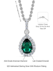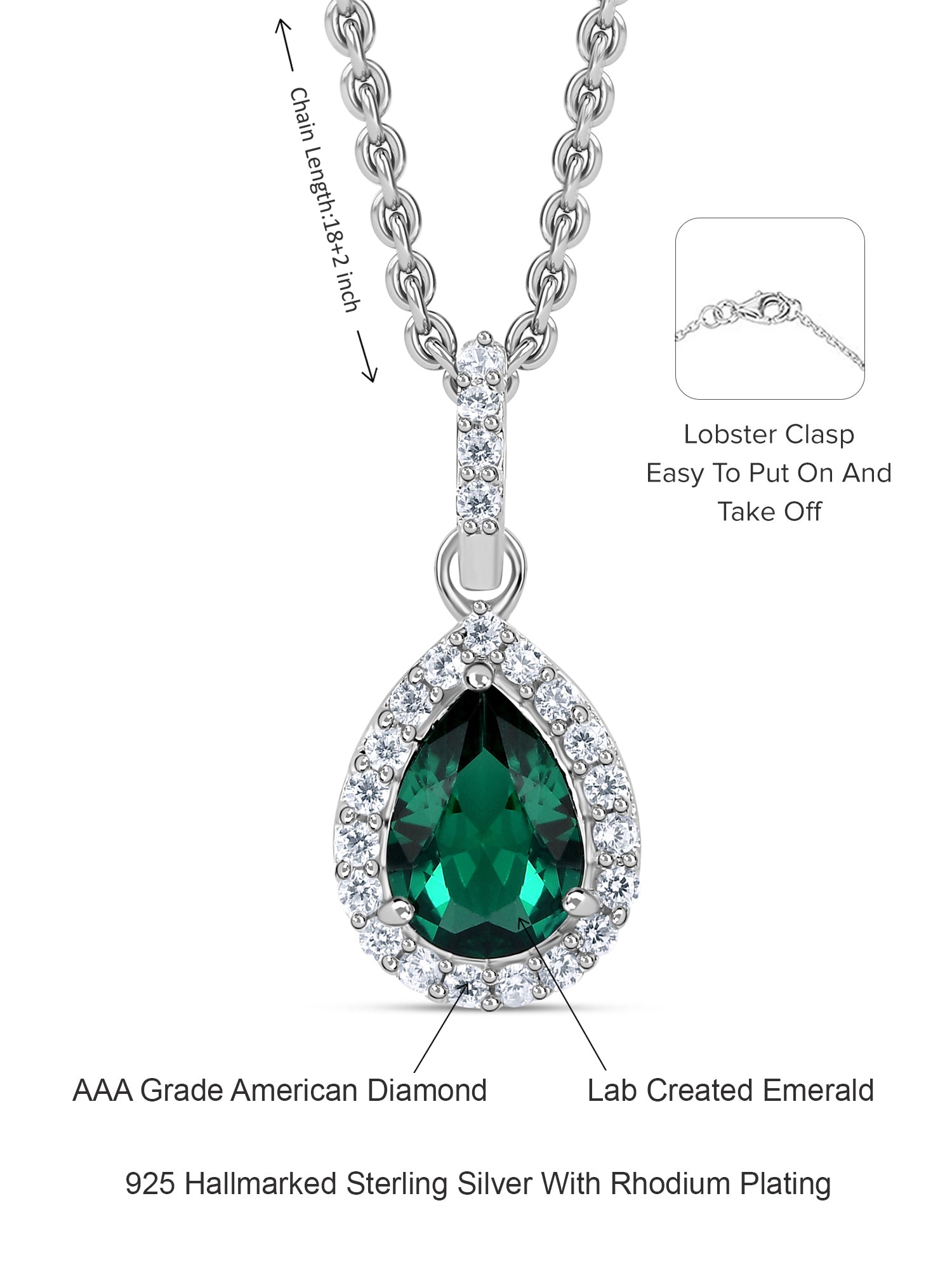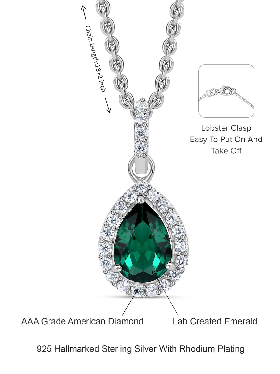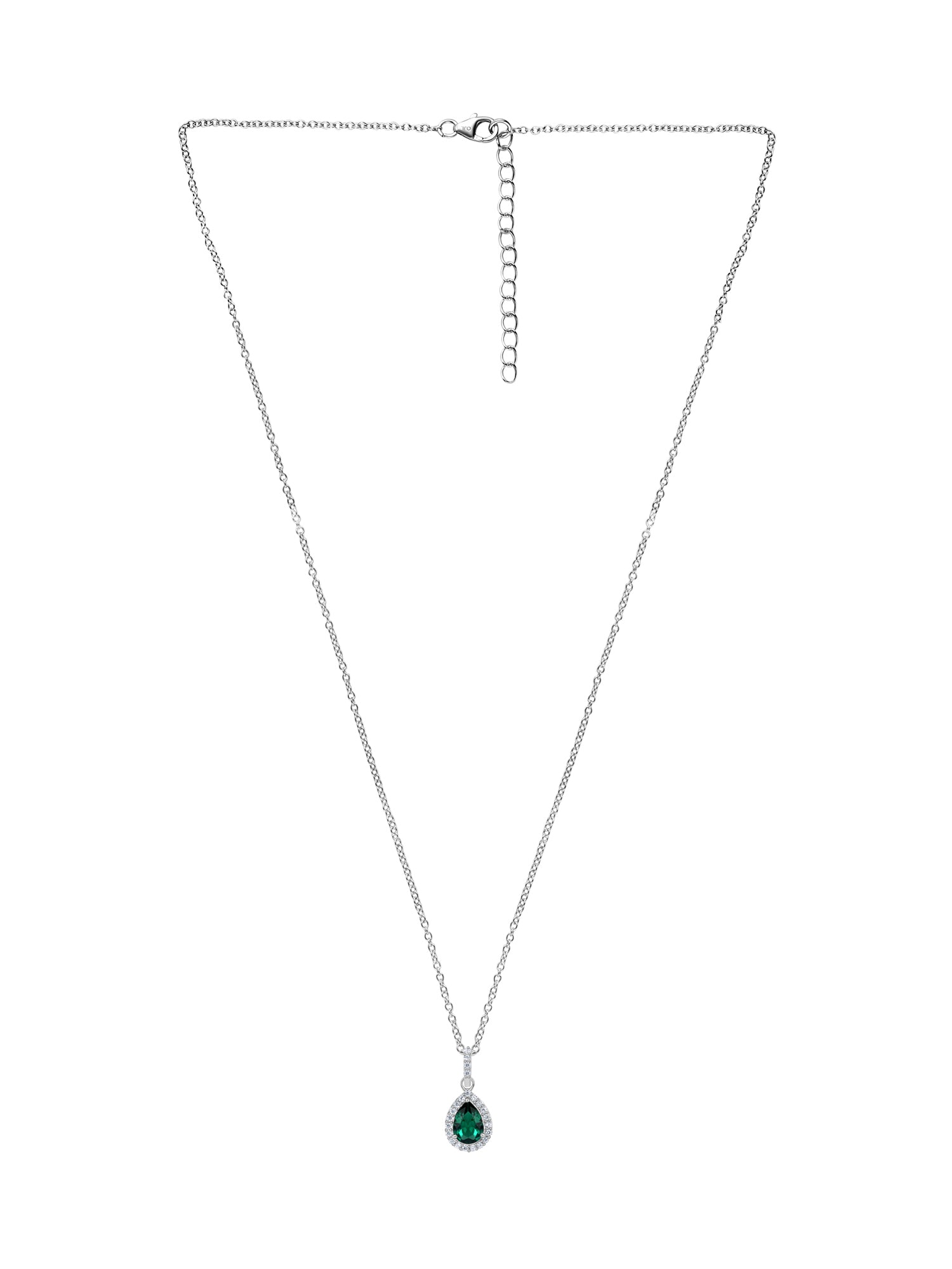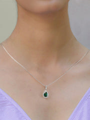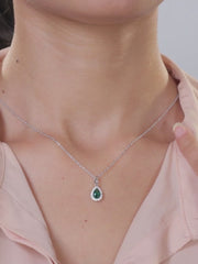 Pear Shape Emerald Halo Pendant With Silver Chain