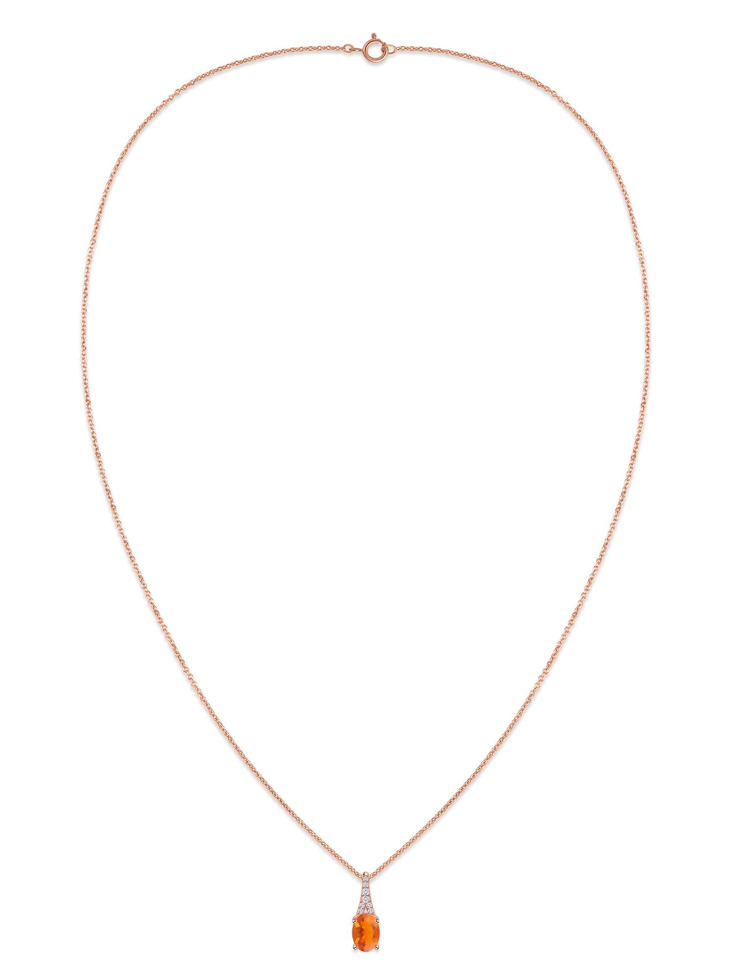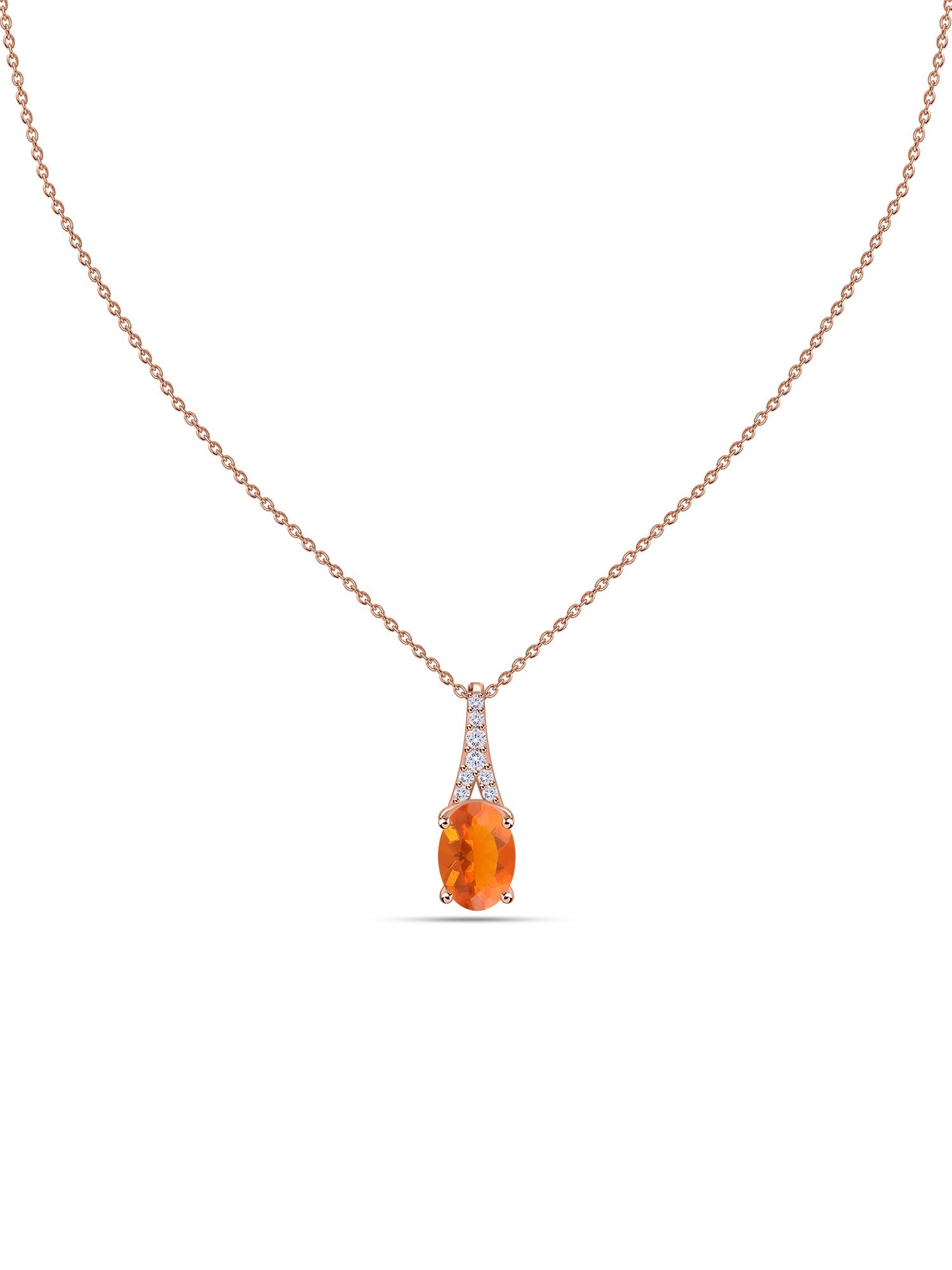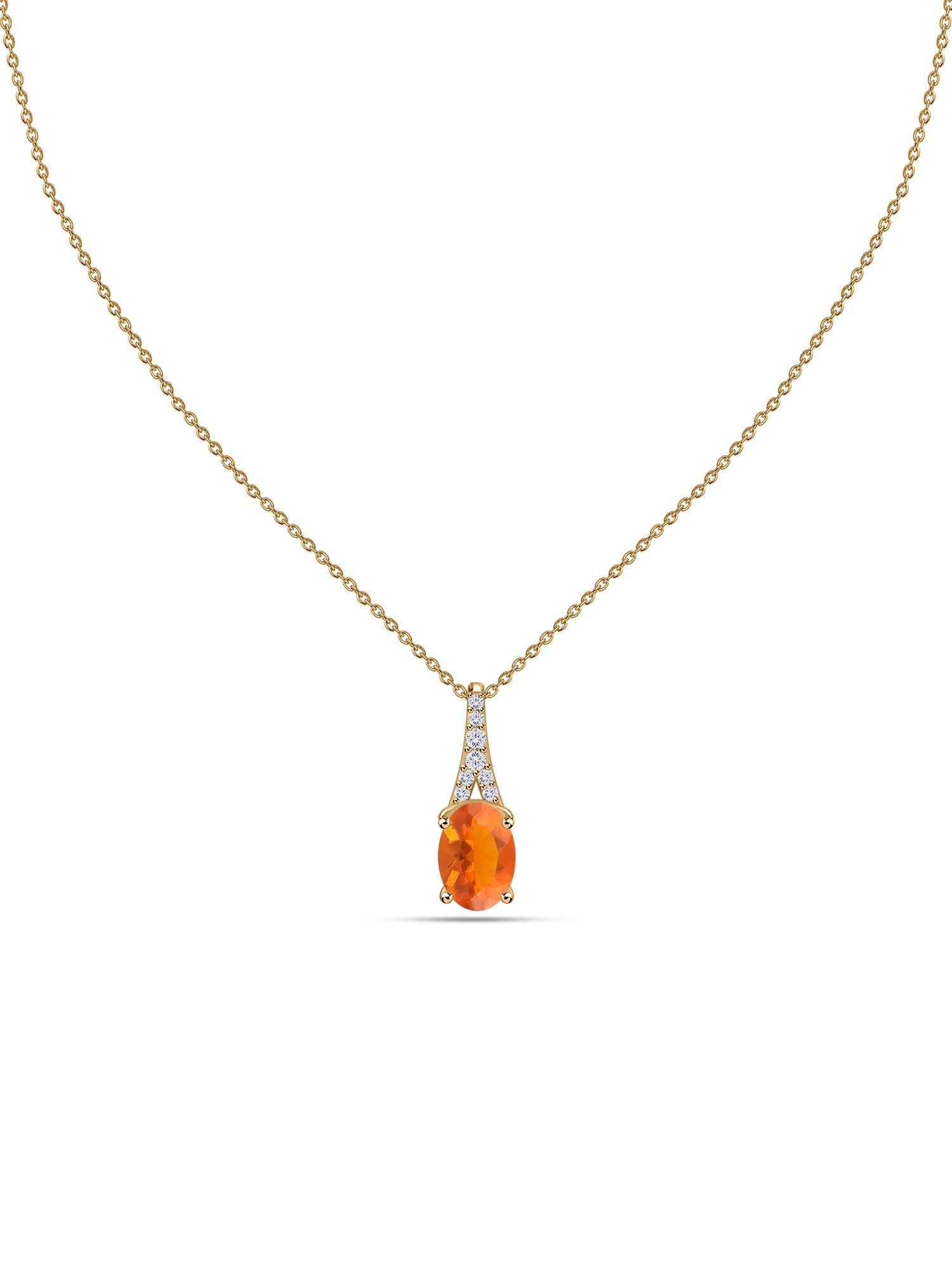 Fire Opal Oval Gold Pendant with Sparkling Diamonds