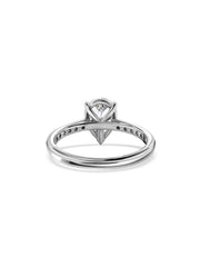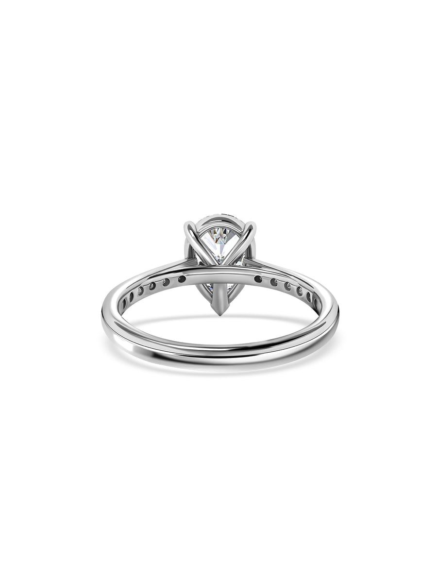 A soft halo cradles the brilliant round diamond, designed for those who love sparkle with subtle romance.