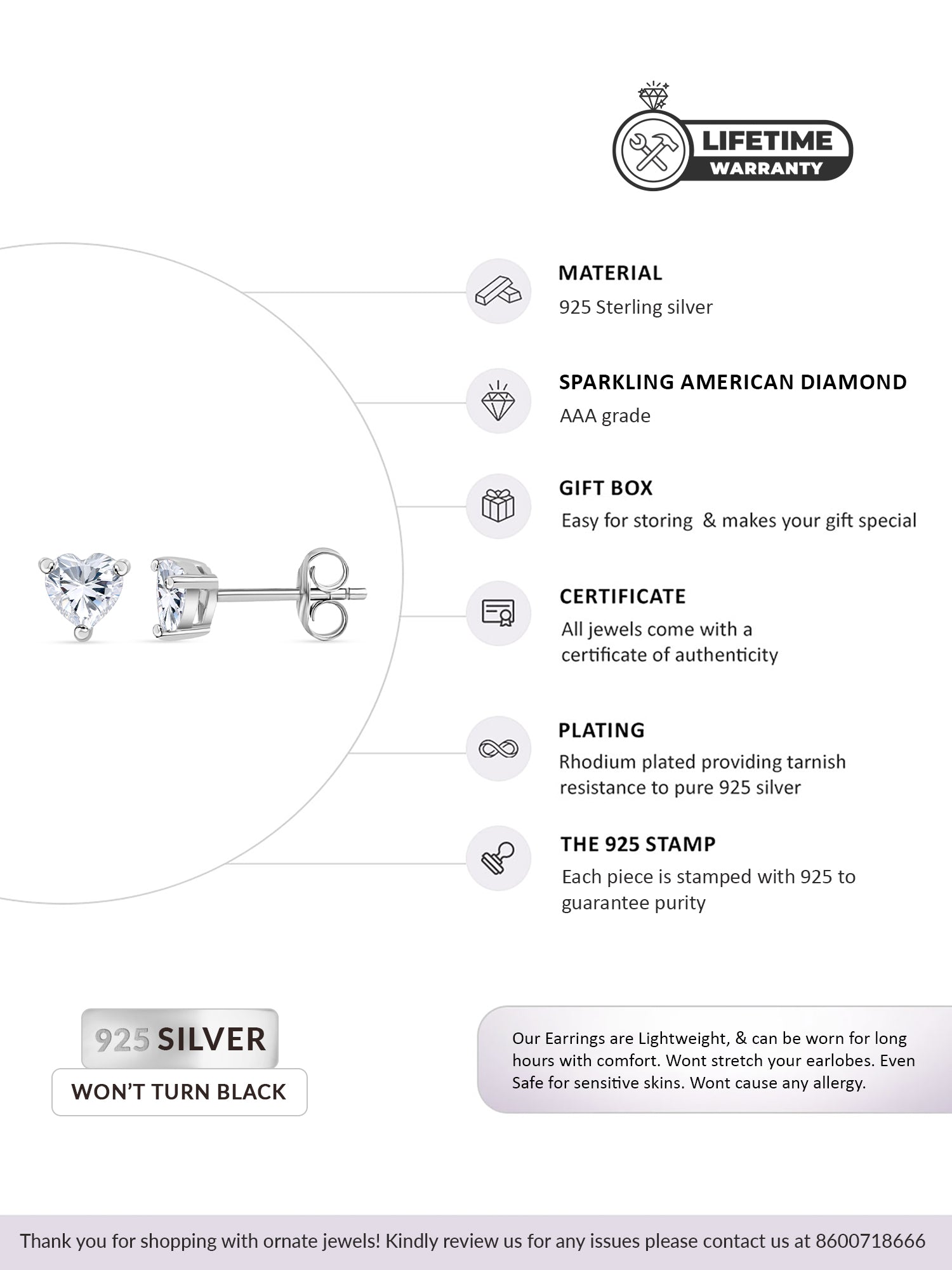 • Made with pure 925 Sterling silver.