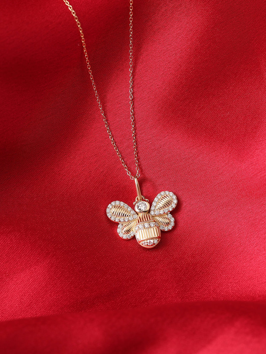 Add a playful touch of luxury with this dazzling bee pendant, crafted in radiant gold and encrusted with sparkling lab-grown diamonds. Symbolizing hard work and positivity, this charming piece is perfect for daily wear or as a thoughtful gift to inspire and shine.