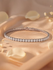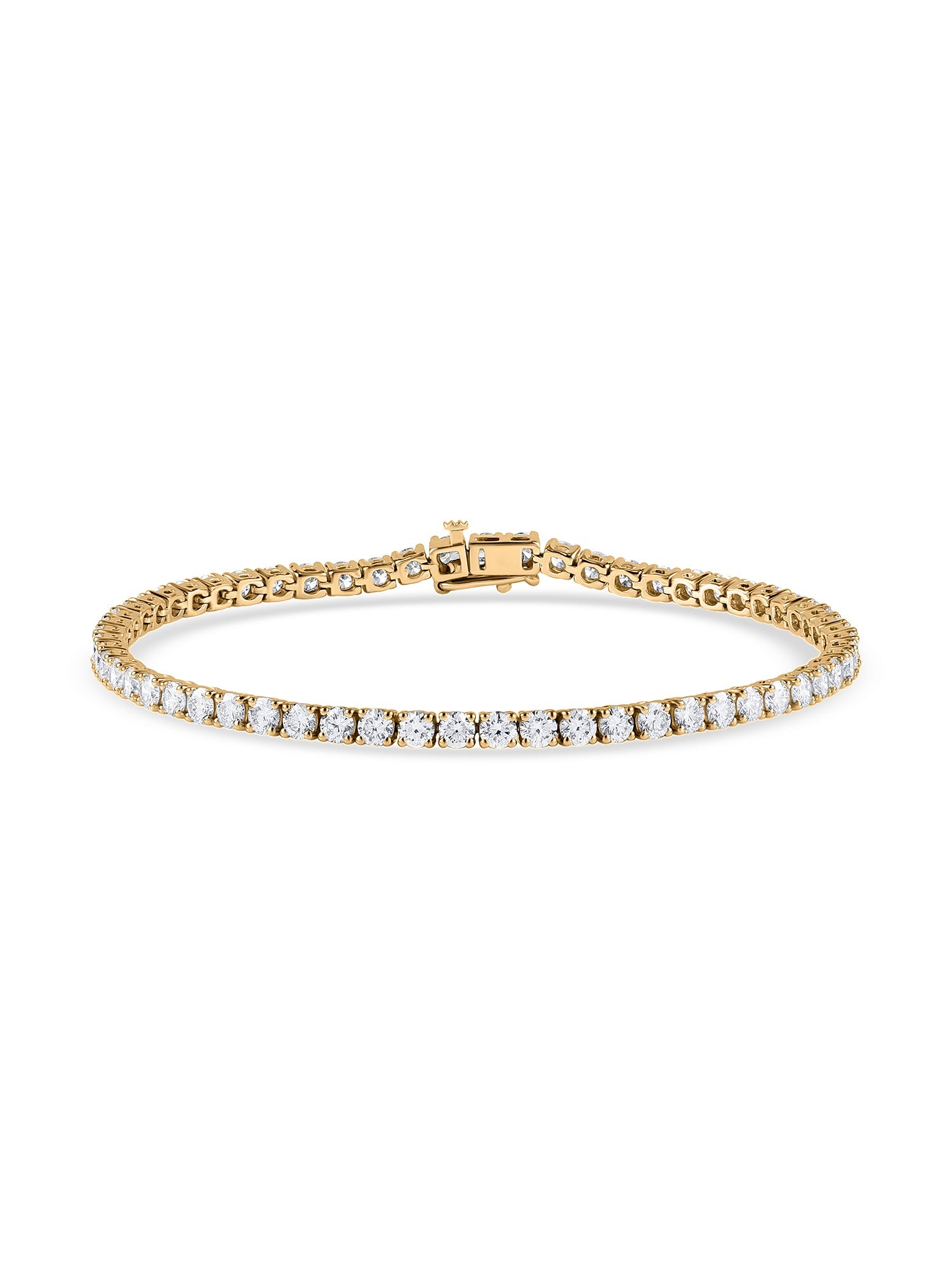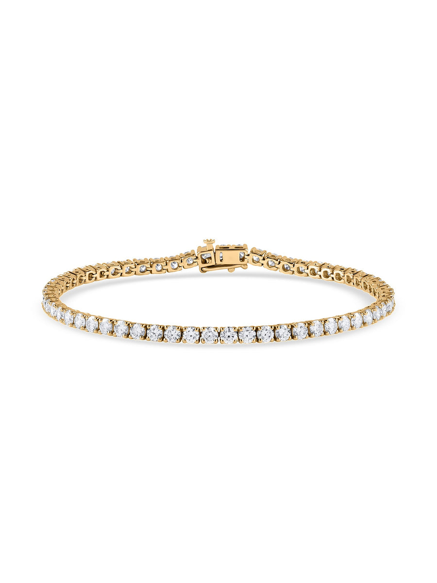 A stunning gold tennis bracelet set with shimmering lab-grown diamonds in a classic line design. Crafted for timeless elegance and perfect for elevating any look, day or night.