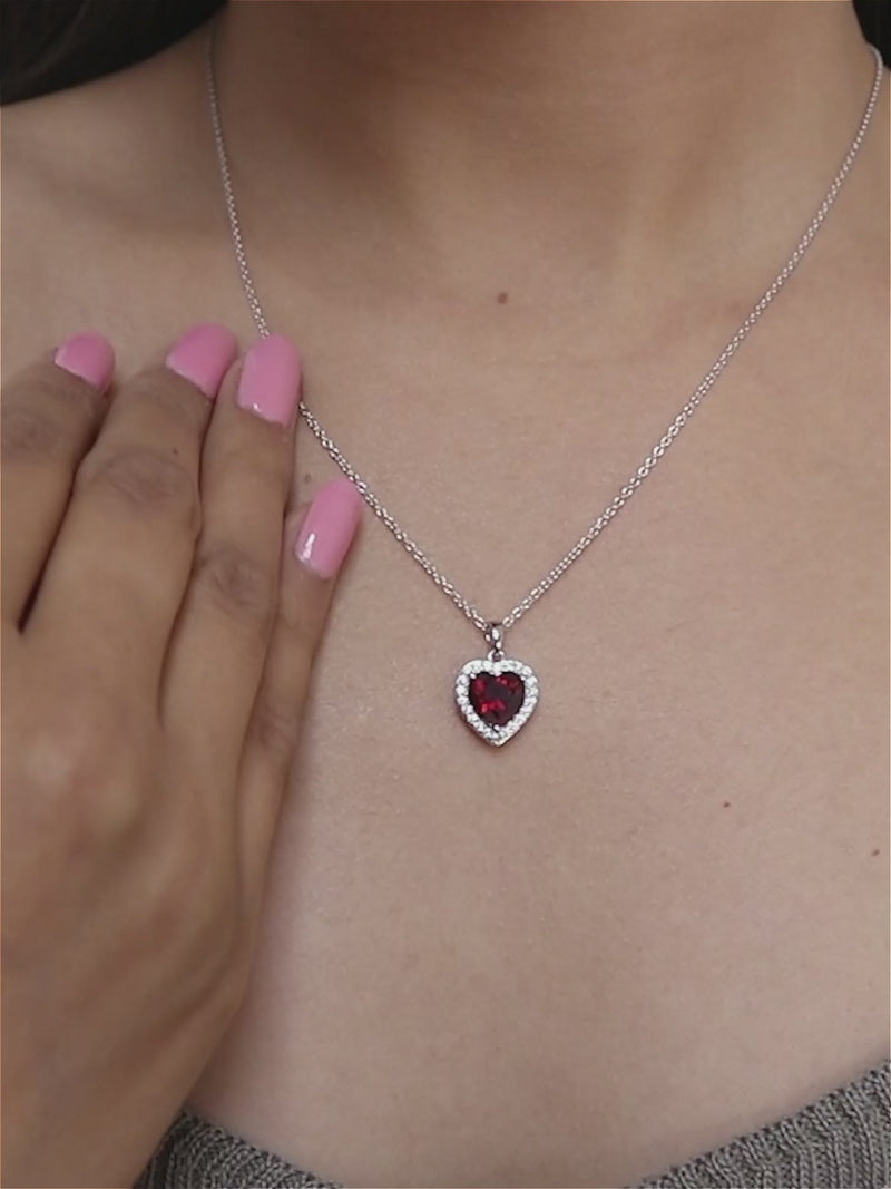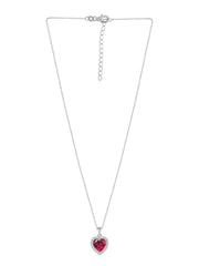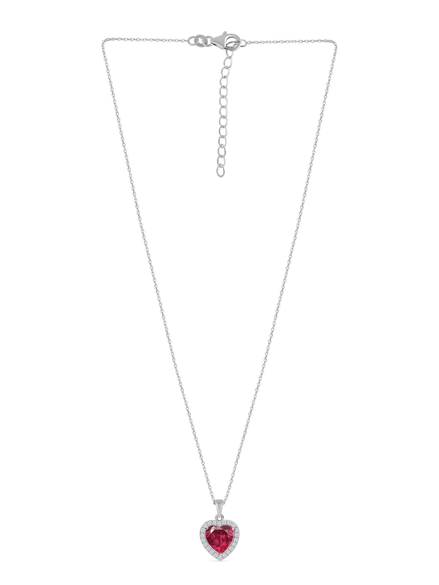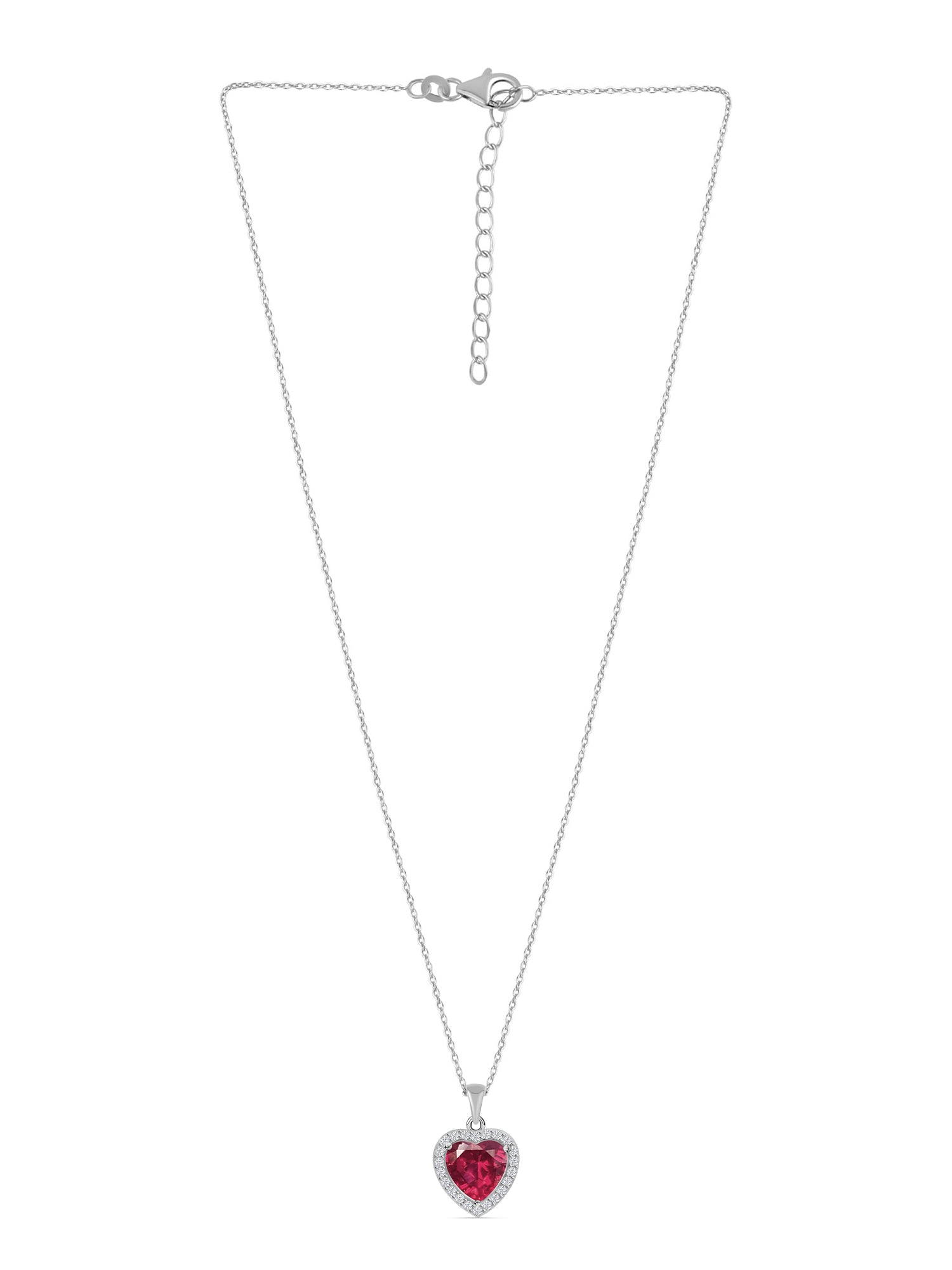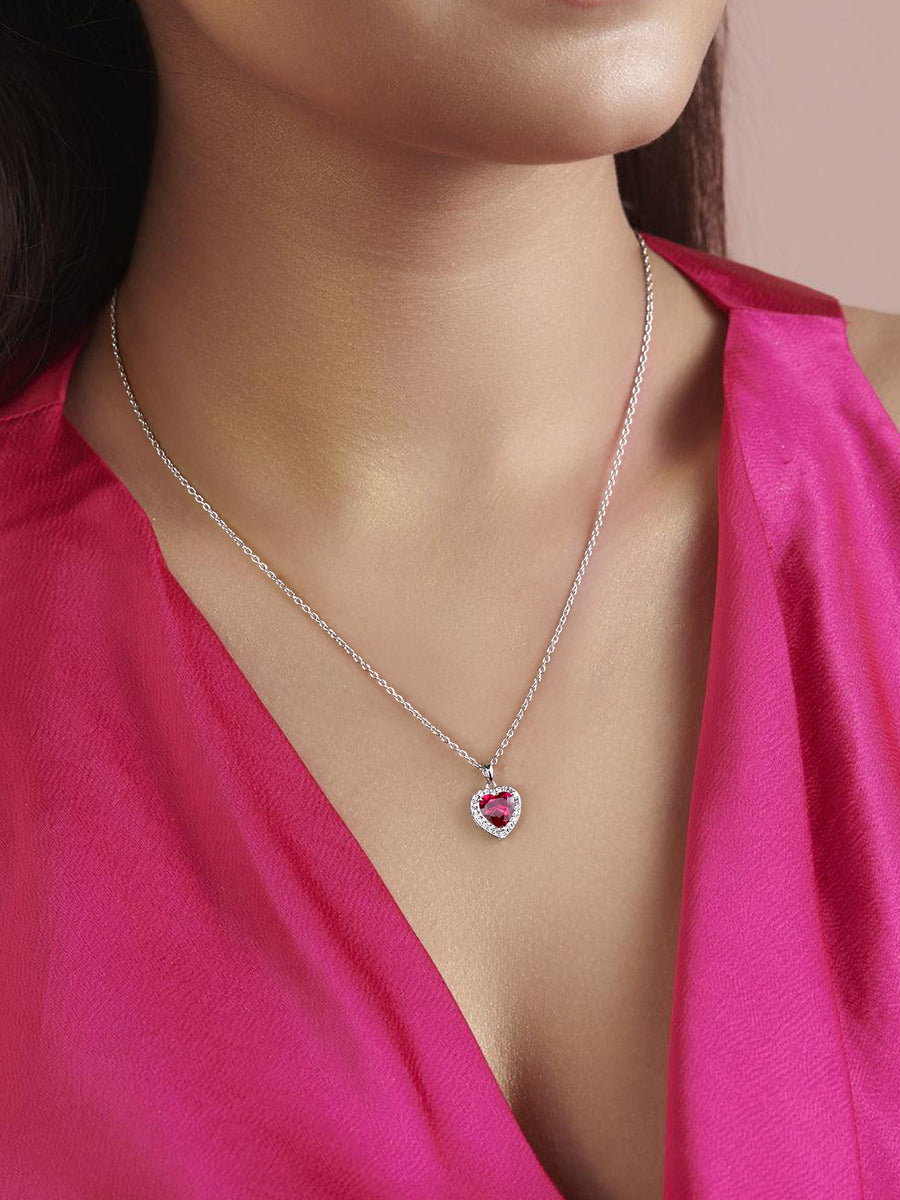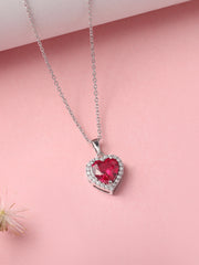 An all-time favorite pendant that will surely win any women's heart. This beautiful piece of ruby heart has a ruby center surrounded by a white halo of American Diamonds.