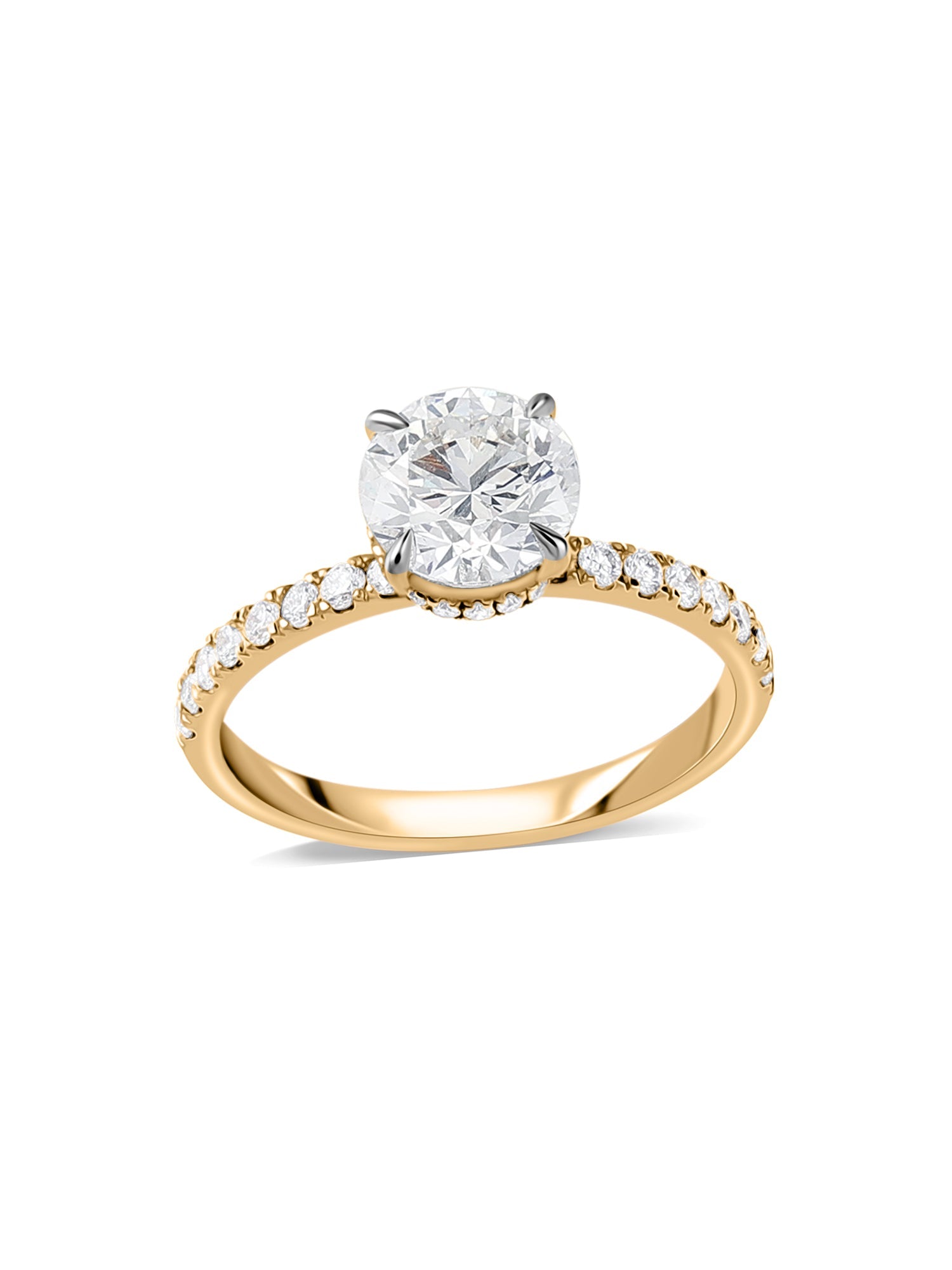A luxury diamond ring for you with a center of 1.5 carats of certified lab diamonds, and it is made with pure gold that's hallmarked. We are manufacturers, hence you always get the best quality with factory-direct prices.