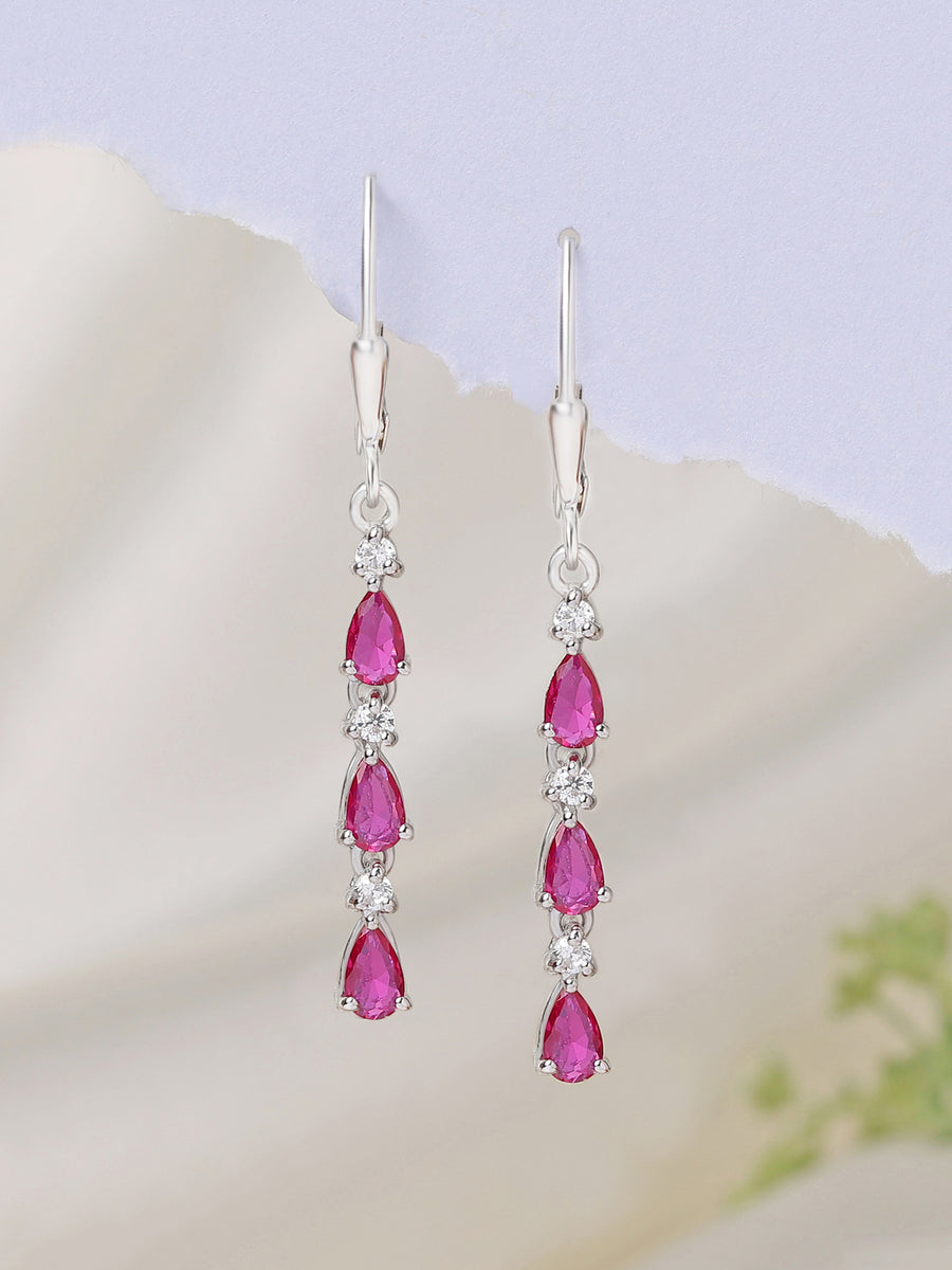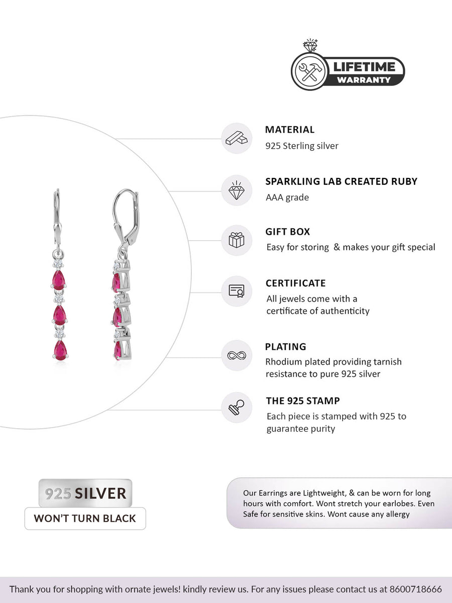 A trendsetter earring that's so chic and stylish. Made with pure 925 sterling silver and lab-created ruby. These are a winner accessory for the fashion-loving woman. Makes it great for women.