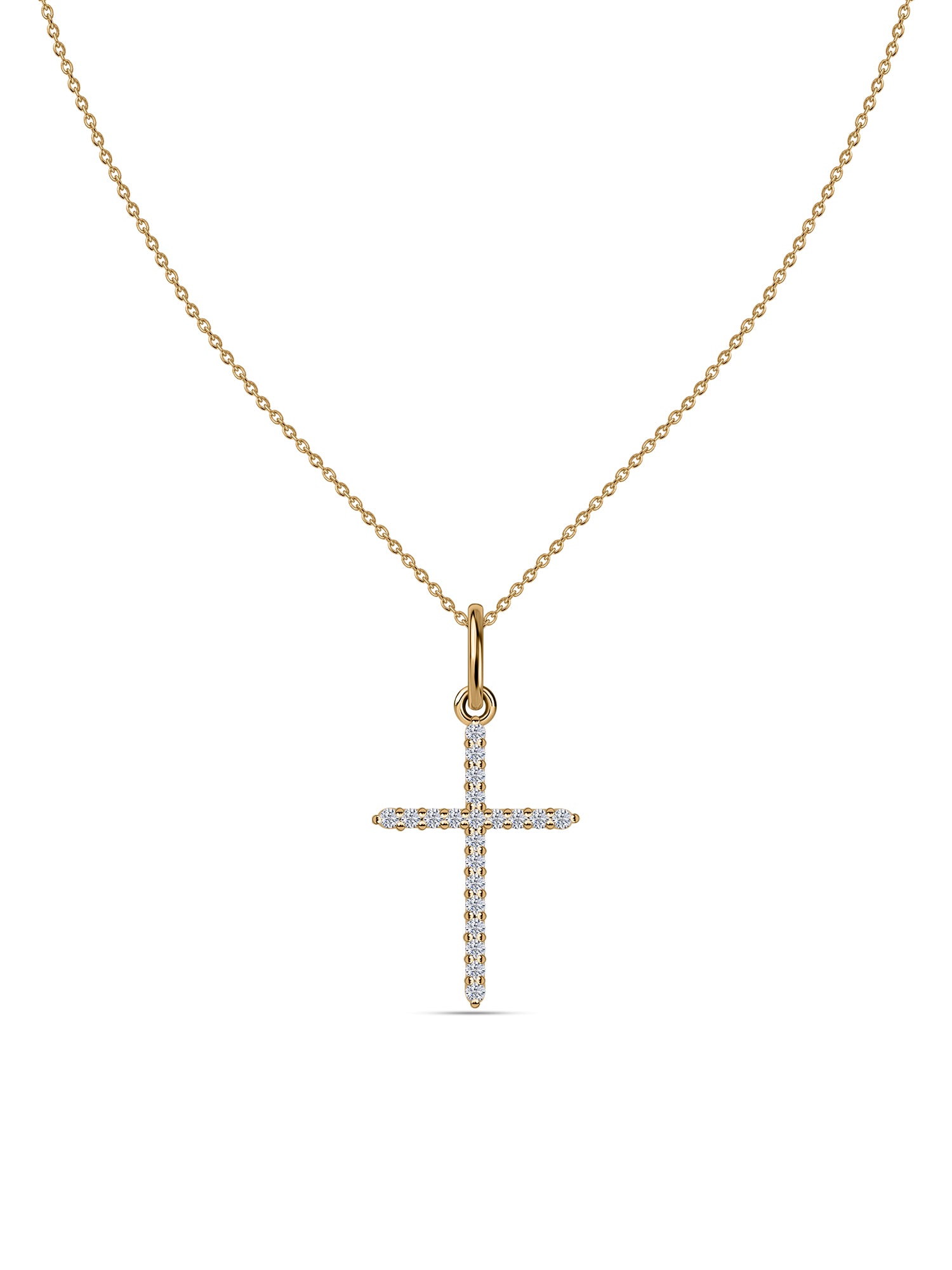 Minimal yet powerful, this gold cross pendant sparkles with finely set lab grown diamonds, symbolizing clarity, strength, and divine protection. Its sleek design makes it ideal for layering or wearing solo — a meaningful piece that beautifully blends faith with contemporary luxury.
