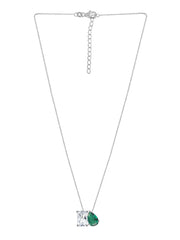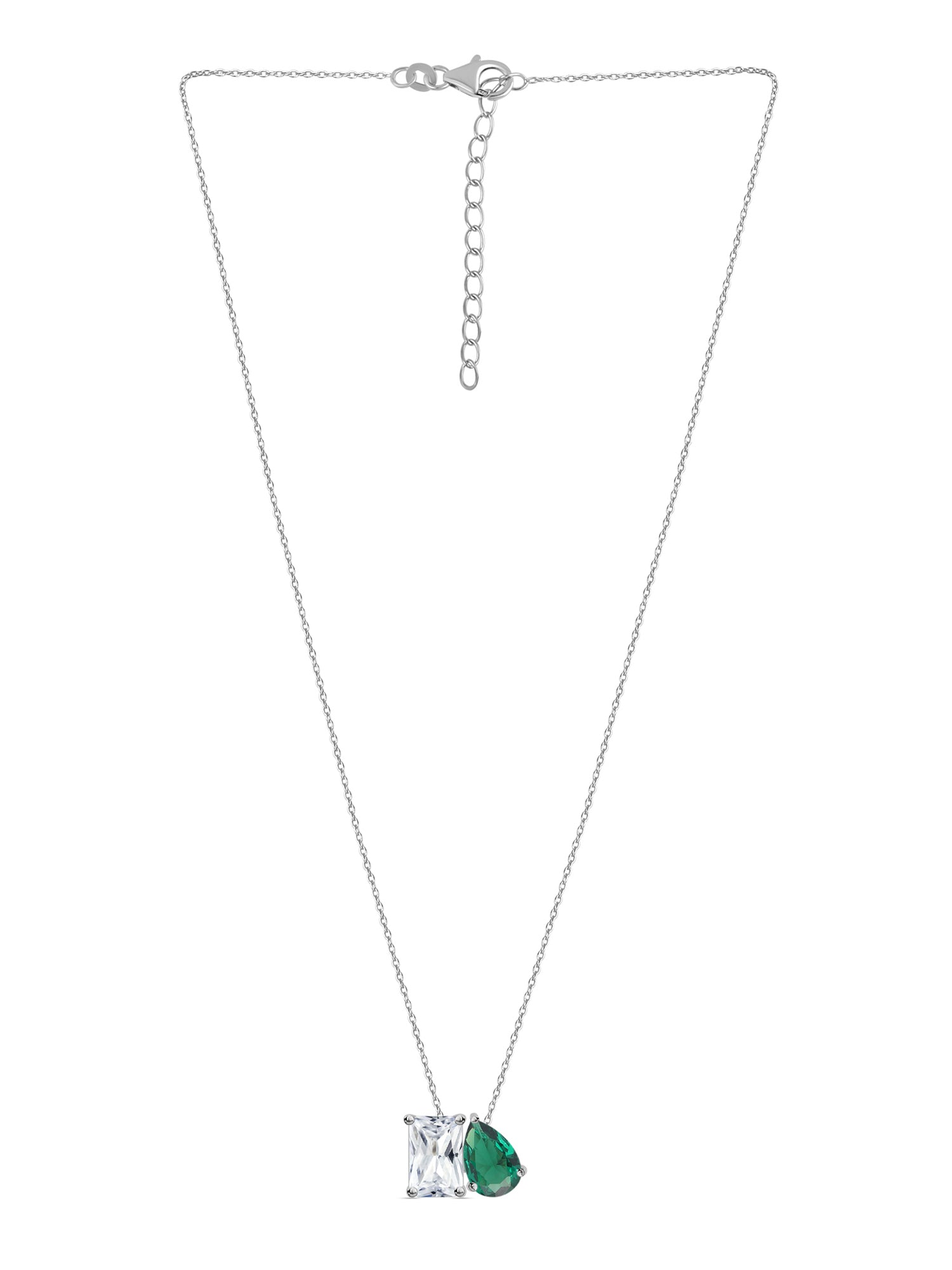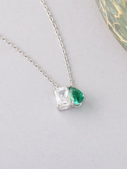 Toi Et Moi Green CZ Pendant With Silver Chain