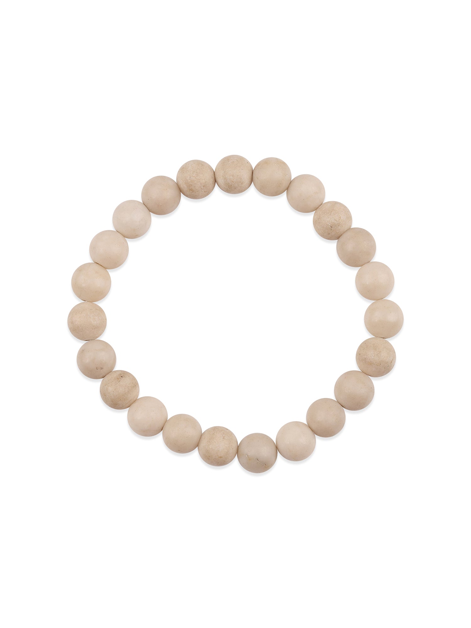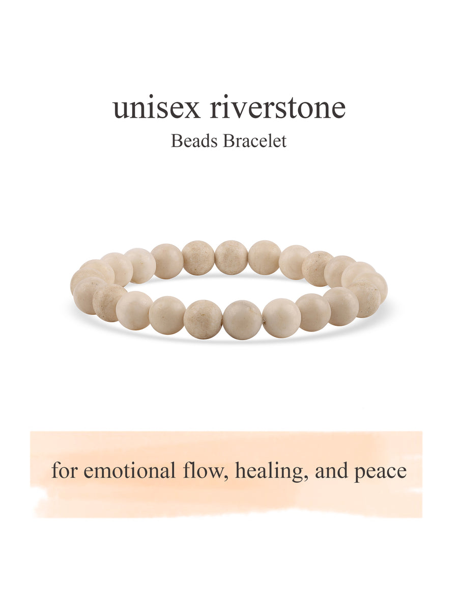 Feel the calming essence of mother nature on your wrist when you wear this Natural Riverstone Beads Bracelet thats stretchable and unisex. This serene white gem beads are known for their earthy energy that enhances balance of mind. This Gem is believed to be gem that helps you get stability and emotional strength.